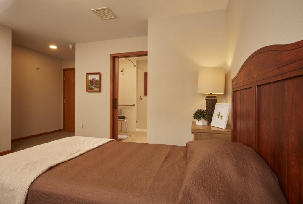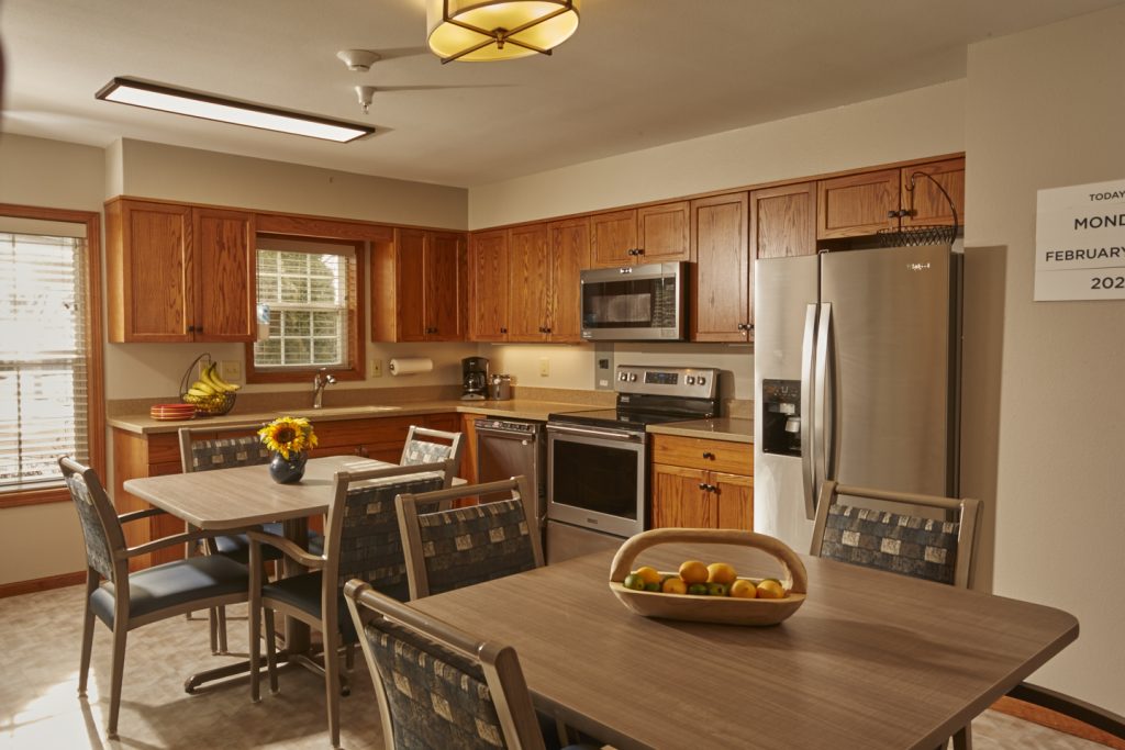 Each cottage features private rooms centered around a peaceful common area and kitchen where residents eat their meals together, take part in wellness programs, and spend time with visitors.